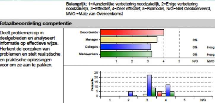 Hierin beoordeel je jezelf en word je naast de open feedback op sterke en te ontwikkelen punten, door anderen beoordeeld op de vooraf gekozen competenties.